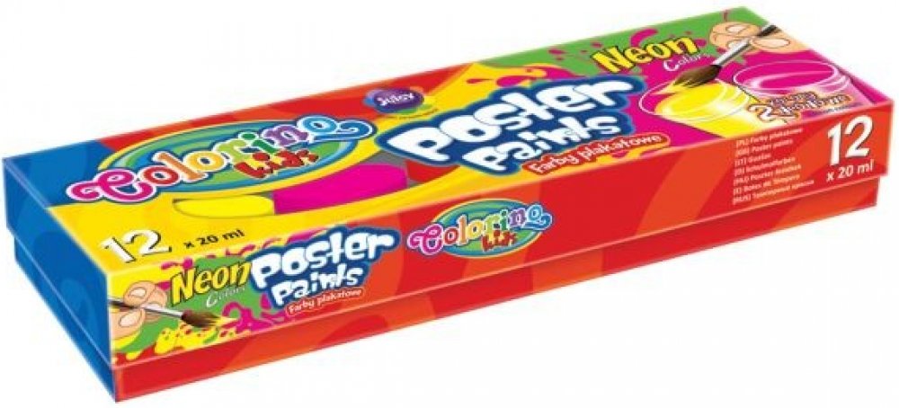 Sada neonových temperových barev Colorino přináší spoustu kreativity a barevné radosti do každé dětské výtvarné chvilky.