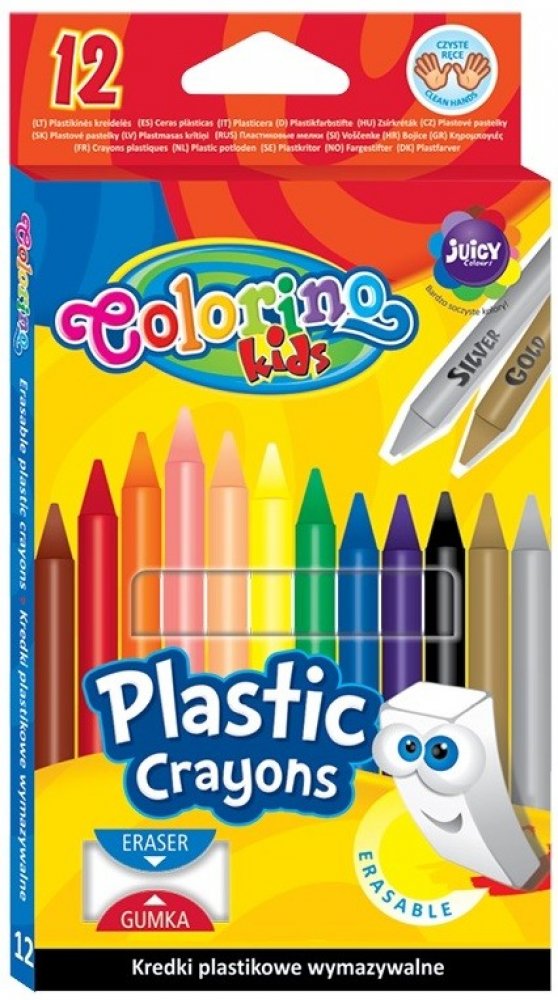 Plastové voskovky, které lze vygumovat pomocí pryže. Barevná stopa je velmi sytá díky vysokému obsahu pigmentů. Ideální pro kreslení na větších plochách. pro školní děti nešpiní ruce měkké kreslení bez ořezávání délka: 118 mm, Ø: 8 mm balení: 10 barev + zlatá a stříbrná + pryž