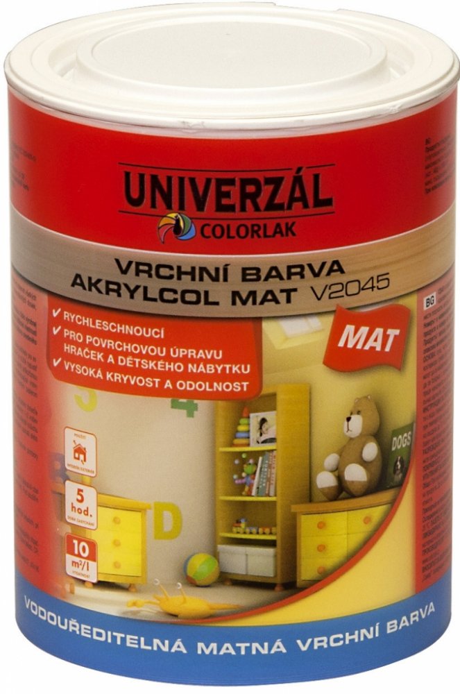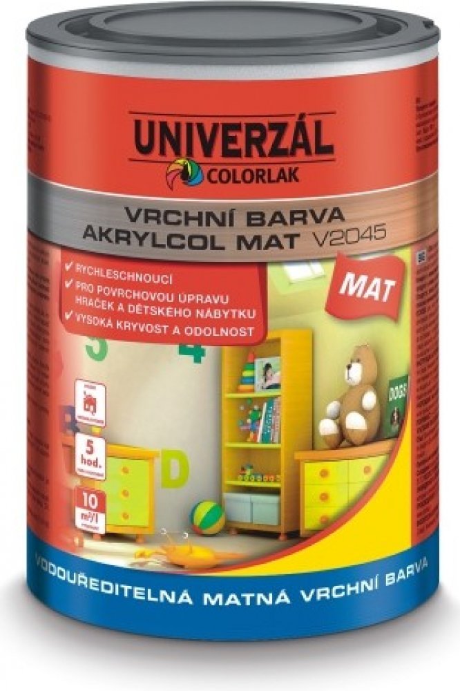 AKRYLCOL MAT je vhodný i pro nátěry dětského nábytku a hraček (EN 71 č. 3) a na vybrané druhy plastů (jako umakart, ABS, tvrdé PVC, polystyrén a polykarbonát).