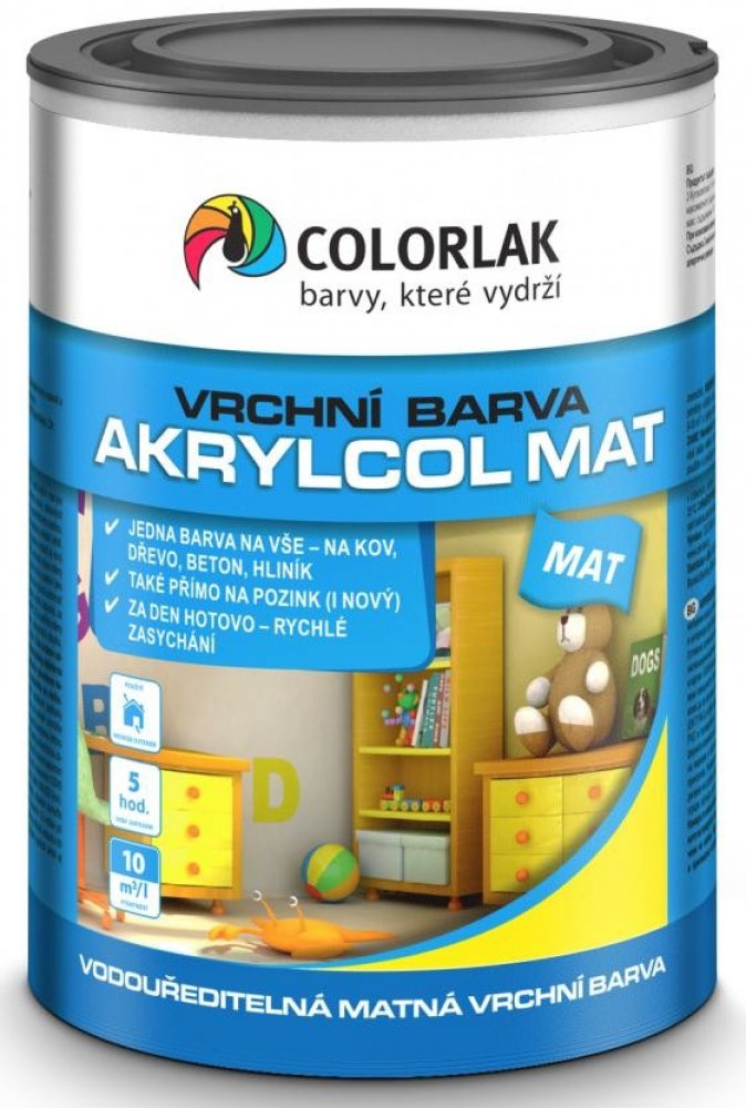 AKRYLCOL MAT slouží k nejrůznějším matným rychleschnoucím venkovním i vnitřním nátěrům dřeva, dřevěných materiálů, kovů (ocel, hliník, měď, pozink), nepochozího betonu, kamene, neglazované keramiky, keramických obkladů, omítek, cihel, lepenky i papíru.