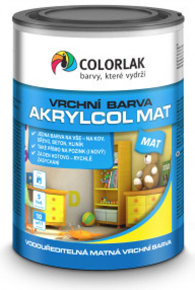 AKRYLCOL MAT je vhodný i pro nátěry dětského nábytku a hraček (EN 71 č. 3) a na vybrané druhy plastů (jako umakart, ABS, tvrdé PVC, polystyrén a polykarbonát).