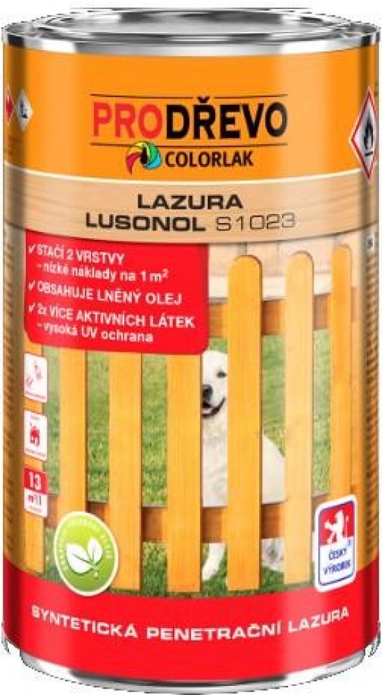 LUSONOL S1023 syntetický penetrační lazurovací lak na dřevo (tenkovrstvý)Použití:• lazura je určena pro penetrační nátěry dřeva vystaveného vlivům povětrnosti i k povrchové úpravě dřeva v interiéru;• zachovává dřevu charakteristickou kresbu a barevně ji zvýrazňuje, v bezbarvém provedení 0000 se používá jako napouštědlo pod olejové a syntetické nátěrové hmoty, nebo pro sjednocení savosti dřeva pod nátěry barevnými LUSONOLY •není vhodný jako vrchní vrstva pro venkovní prostředí;• pro ochranu dřeva před biologickými škůdci v exteriéru doporučujeme před použitím laku napustit dřevo fungicidním napouštědlem S 1031 FUNGISTOPPřednosti:• výborná stálost na povětrnosti;• 2 x více aktivních látek• vysoká odolnost UV záření;• nízké náklady na 1 m2;• zachovává přirozenou strukturu dřeva;• dřevo neomezeně dýchá;• vylepšená receptura; Nanášení: Štětcem, válečkem při teplotě 10-25 °C. Nevsáklý přebytek laku se po 10-20 minutách setře suchým štětcem nebo hadrem. Pro venkovní použití se doporučují 2 vrstvy (nátěr štětcem), pro interiér 1 vrstva.Ředidlo:Pro ředění je ideální ředidlo S 6006 nebo C 6500.Teoretická vydatnost:8-13 m2 na 1 litr při spotřebě laku 80 -120 g/m2