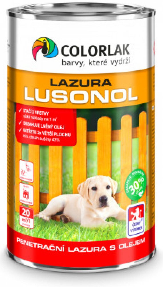 - Díky unikátní receptuře s vysokým podílem přírodního oleje (sušiny) stačí v exteriéru pro důkladnou ochranu pouze 2 nátěry, oproti běžným 3 nátěrům! S LUSONOLEM S1023 tak ušetříte 33 – 50% svého času a celkových nákladů!!!