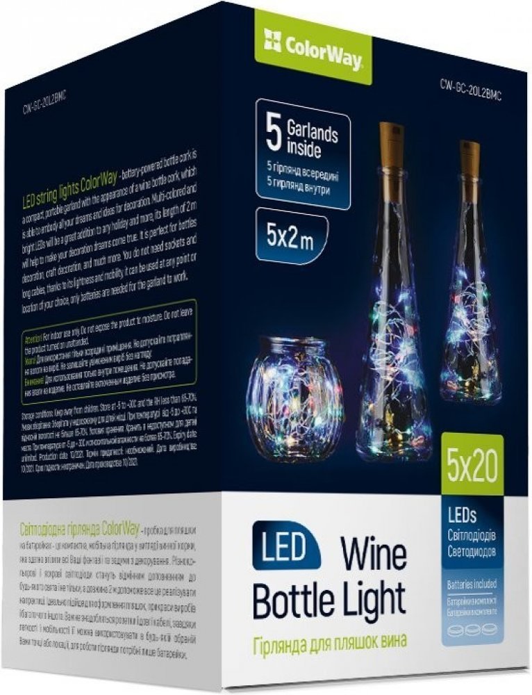 ColorWay CW-GC-20L2BMC 5× 2m LED osvětlení, řetěz, dekorativní, vnitřní, 20 LED, vícebarevné, 3× AG13 baterie, 2m, 5ks CW-GC-20L2BMC