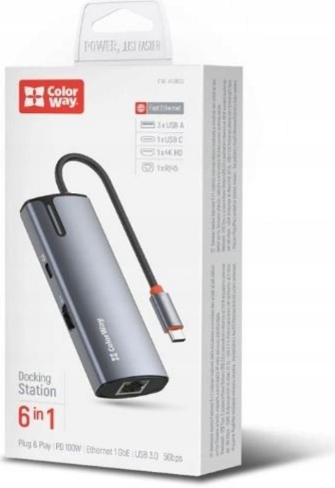 připojení 6 v 1 Dokovací stanice ColorWay rozšiřuje funkčnost portu USB-C vašeho notebooku a umožňuje připojit více zařízení současně.