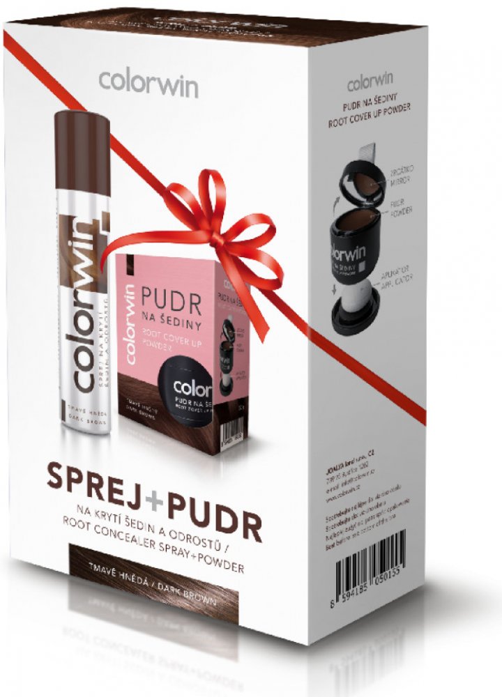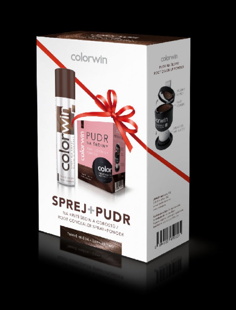 Colorwin sprej 75 ml + pudr 3,2 g na krytí šedin tmavě hnědý