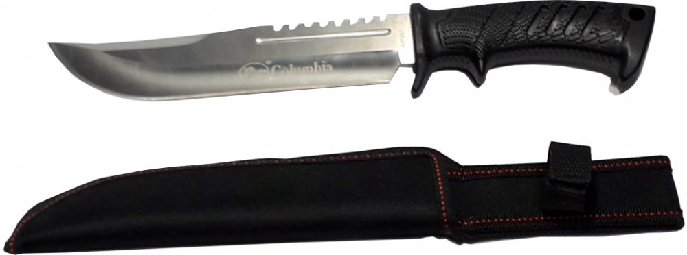 Lovecký nůž Columbia Kojot s ochranným pouzdrem je vyroben z velice kvalitní nerezové oceli s rukojetí z trvzeného plastu. Celková délka: 32 cm, délka čepele: 19 cm, tloušťka čepele: 4 mm, délka rukojeti: 12,5 cm