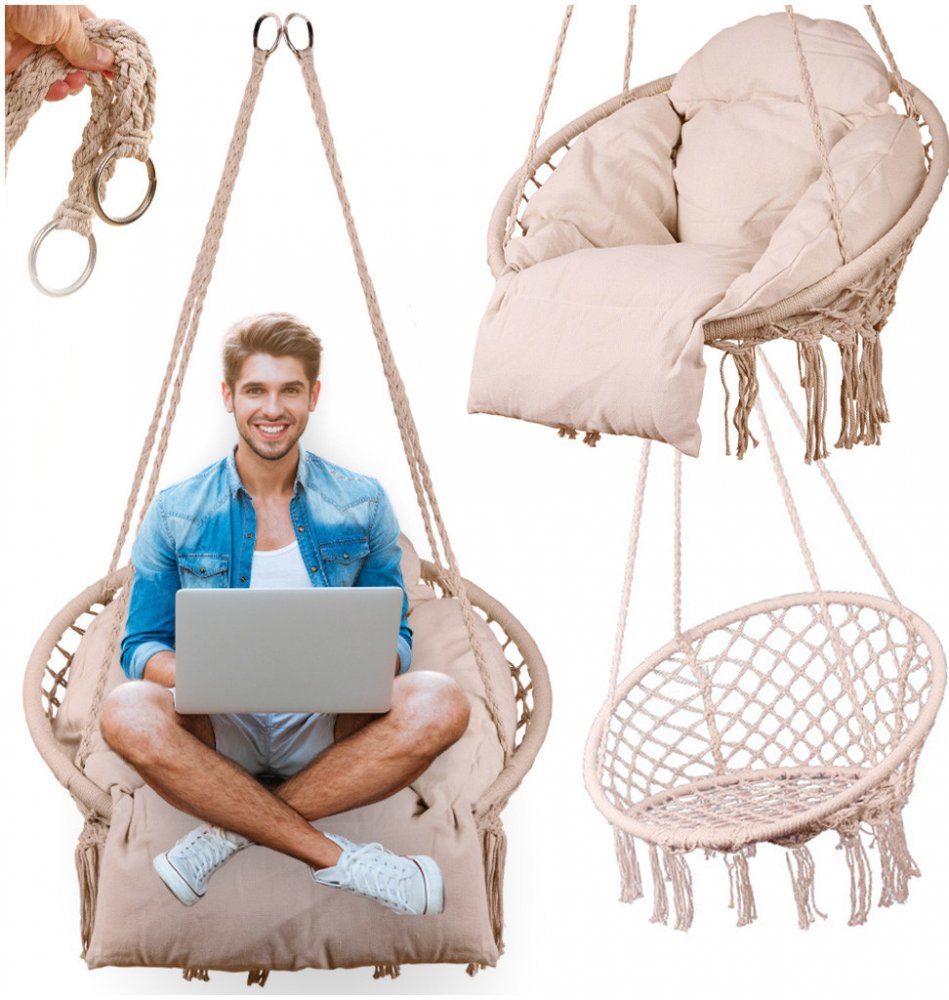 Byla vytvořena s ohledem na vaše pohodlí, zaručuje dokonalou polohu těla a měkký polštář ještě více umocňuje požitek z houpání. Její světle barevné provedení nejenže zvýrazní půvab vaší zahrady, ale stane se také výrazným doplňkem vašeho domácího interiéru. Houpačka je vyrobena z robustních materiálů a vybavena pevnými lany, díky čemuž bez problémů vydrží hmotnost až 120 kilogramů.