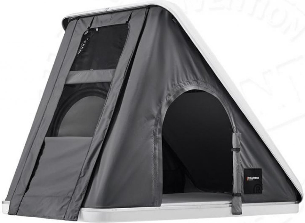 Střešní stan COLUMBUS VARIANT CARBON SMALL s bílou skořepinou, barvou látky carbon (černá), délkou 210 cm, šířkou 130 cm (small) a výškou 150 cm (otevřený) / 30 cm (zavřený). Autostan COLUMBUS VARIANT je variantou klasického modelu v materiálu Airtex v šedé barvě a je vybaven 3 vchody. Velké vchodové okno vzadu disponuje mnoha možnostmi otevírání dle potřeby ventilace a světla.