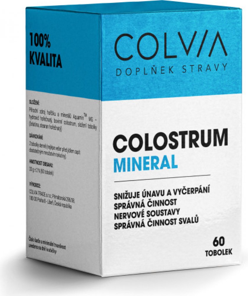 COLVIA COLOSTRUM + MINERAL obsahuje čisté sušené bovinní colostrum. Bovinní (kravské) colostrum je první mléko produkované mléčnými žlázami po porodu. Colostrum je komplex více než 250 složek, cenné vysokým obsahem biologicky aktivních látek zejména imunoglobulinů IgG, laktoferinu, laktoperoxidázy a dalších aktivních peptidů. Díky použité technologii (sušení vymrazováním – tzv. lyofilizaci) zpracování je zachován maximální účinek vstupní suroviny.