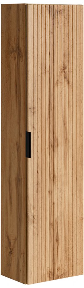 Vysoká jednodveřová skříňka z řady Adel Oak představuje spojení elegantního designu a funkčnosti vhodné do každé koupelny. Přední čelo s jemným rýhováním a čtyři pevné police poskytují dostatek místa pro kosmetiku, ručníky a další doplňky. Systém tichého dovírání Softclose zajišťuje hladké a bezhlučné zavírání dveří.