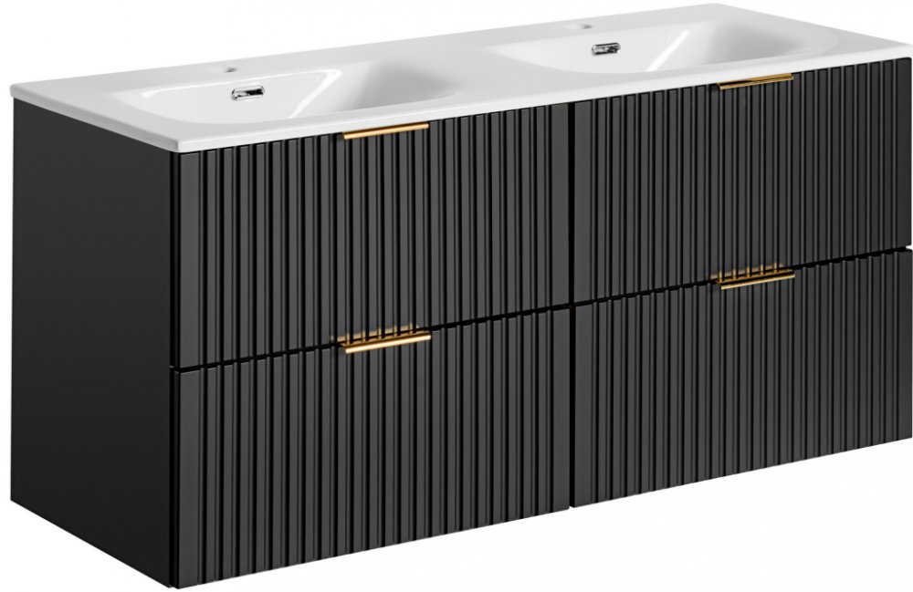 Comad Koupelnová skříňka s keramickým dvojumyvadlem Adel Black 120 cm - černá mat