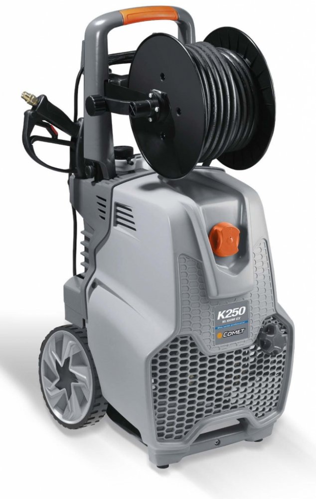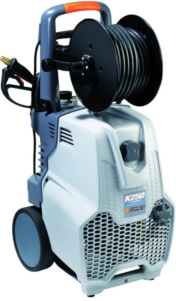 K 250 - 13/190 Extra TSR - 380V Tyto vysokotlaké čističe jsou osazeny pomalu běžným INDUKČNÍM 4-pólovým motorem s 1400 ot./min a RW s klikovou hřídelí - čerpadlem. Tato vysokotlaká čistící technika určuje stroj pro profesionální použití v menších firmách, menších zemědělských provozech ale i pro Hobby použití apod. Dalšími technickými přednostmi této řady jsou profesionální regulační blok pro poho...