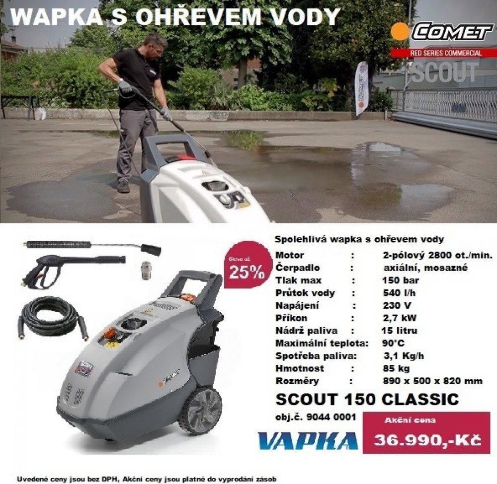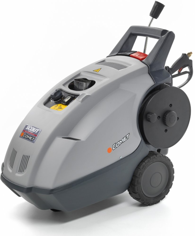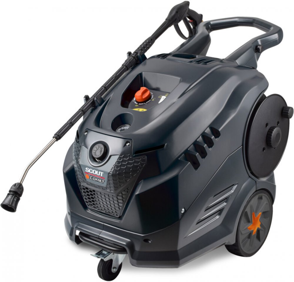 Základní vysokotlaký čisticí stroj pro občasné hobby použití v okolí domu či zahrady. Tento stroj je velmi kompaktní, poměrně silný a uživatelsky velmi snadný na obsluhu. Nízká spotřeba paliva v kombinaci s vysokou efektvitou zajistí nízké provozní náklady. Uživatel ocení snadnou mobilitu stroje na kolečkách i celkovou nízkou hmotnost stroje. Praktické uložení stříkací pistole a nástavce, kontrola hladiny paliva, funkce total-stop, vestavěná nádrž na čisticí prostředek, manometr a také nastavitelná výstupní teplota. Pokud potřebujete levný vysokotlaký stroj s ohřevem na občasné hobby účely, je právě pro Vás Comet Scout vhodná volba. Doporučujeme např. jako levnější a výkonnější alternativu ke stroji Karcher HDS 5/11.