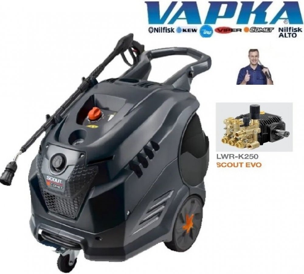 SCOUT 160 EVO CLASSIC vysokotlaký čistič s ohřevem vody pro VĚTŠÍ čištění pro dům, dílnu, zahradu, vozového parku a menší firmu. Tento vysokotlaký čistič Scout 160 EVO CLASSIC je velmi kompaktní, silný a snadný pro obsluhu, Vyznačuje se nízkými náklady na provoz. Rovněž je výhodou mobilita díky kolečkům a je snadno převozitelný ve vozidlech kombi . Scout 160 EVO CLASSIC má mosaznou hlavu čerpadla