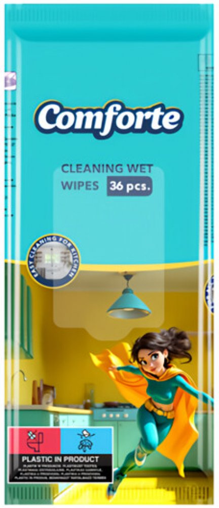 -- Vlhčené ubrousky Comforte do kuchyně, 36 ks.Speciálně vyvinutý zvlhčující roztok ubrousků je ideální na utírání ploch v kuchyni. Poskytuje bezkonkurenční čistotu a lesk na všech kuchyňských površích. Vhodný na desky, dřezy a jiná kuchyňská zařízení.…