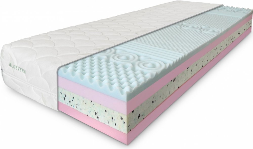 Matrace Dream Relax 21 cm obsahuje vysoce kvalitní 7-zónovou profilovanou elastickou PUR pěnu Carpenter RP30. Tato pěna je známá pro svou vynikající elasticitu, což znamená, že se dokáže rychle přizpůsobit tvaru těla a zároveň se rychle vrací do původního tvaru. Profilace pěny do sedmi zón zajišťuje, že různé části matrace poskytují optimální podporu pro různé části těla – například pevnější podporu pro oblast páteře a měkčí zóny pro ramena a boky.
