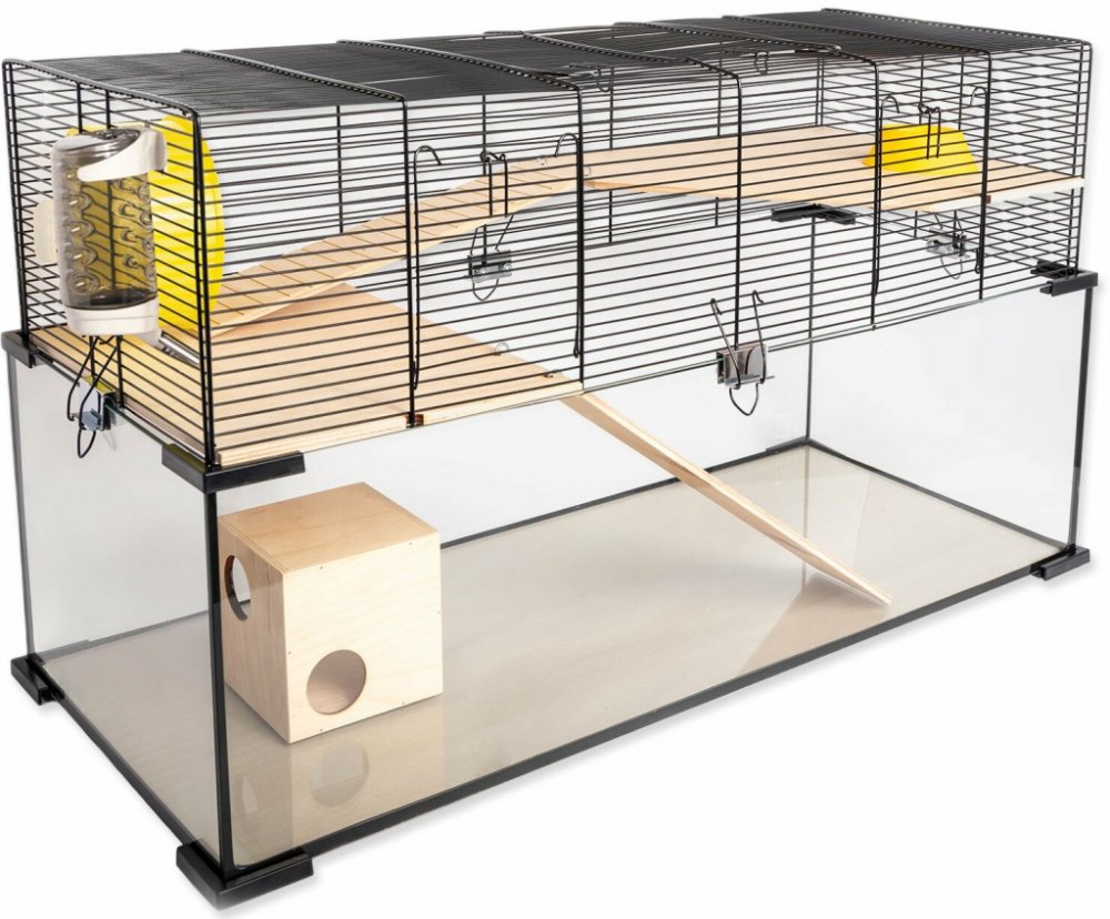 Klec VETRO PLUS NATURE – pohodlný domov pro malé hlodavce Dvoupatrová klec VETRO PLUS NATURE je ideální volbou pro malé hlodavce, kterým poskytne dostatek prostoru i zábavy. Spojuje praktický design se skleněným spodkem a kovovým krytem, díky čemuž máte svého mazlíčka neustále na očích. Vysoký skleněný spodek umožňuje vložit větší množství podestýlky, ve které si zvířátko může spokojeně hrabat a n...
