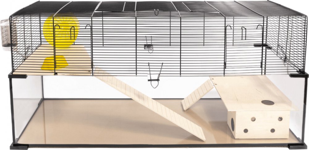 Klec VETRO PLUS NATURE – pohodlný domov pro malé hlodavce Dvoupatrová klec VETRO PLUS NATURE je ideální volbou pro malé hlodavce, kterým poskytne dostatek prostoru i zábavy. Spojuje praktický design se skleněným spodkem a kovovým krytem, díky čemuž máte svého mazlíčka neustále na očích. Vysoký skleněný spodek umožňuje vložit větší množství podestýlky, ve které si zvířátko může spokojeně hrabat a naplňovat tak svůj přirozený instinkt. Součástí balení je také praktické vybavení, které zajistí pohodlí a aktivní život vašeho mazlíčka. Dvoupatrové provedení nabízí více prostoru pro pohyb a hru. Skleněná základna s kovovým krytem umožňuje skvělý výhled na mazlíčka. Vysoký základ pojme velké množství podestýlky pro přirozené hrabání. Součástí balení je žebřík, miska, napáječka, běhací kolečko a bavlněná podestýlka v tunelu.