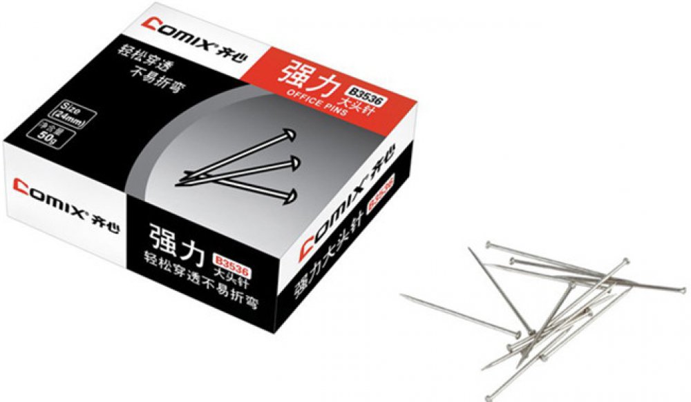 Špendlíky kovové Comix B3536 24mm klasické poniklované špendlíky v papírové krabičce, 50 gramů. Délka špendlíků je 26 mm. Špendlíky jsou určeny pro různé druhy využití např. k připínání různých textilních materiálů, do kanceláře a domácnosti.Proč právě tento produkt?- profesionální výrobce COMIX GROUP- vysoce kvalitní materiály- přísné požadavky na kvalitu- garance- nákladově efektivní- produkty nejvyšší kvality- více jak 26let zkušeností s výrobouO výrobci:Společnost COMIX byla založena v roce 1991 a je to největší výrobce kartoték a kancelářských potřeb v ČLR. COMIX GROUP, byl vybudován jako moderní skupina podniků a roste jako jedna z nejznámějších stacionárních značek, disponuje továrnou o výrobní ploše 80 000 m2.Specializace na PP files (soubory z polypropylenu), papírenský sortiment a kancelářské potřeby. COMIX vlastní další továrnu o rozloze 20 000 m2 v okrajové části Shenzhenu zaměřenou především na OA stroje, vlastní výzkumné a výrobní centrum a dceřiné společnosti s distribucí šířící se ve více než 500 městech a denně zásobuje více než 60 000 maloobchodníků s tiskovinami. Díky své vynikající kvalitě a rozmanitosti výrobků, inovativnímu designu a profesionálním službám je společnost Comix známá v celém papírnickém průmyslu v ČLR jako vedoucí značka. Je to první čínský papírenský podnik, který získal ISO9001, první v oblasti papírnictví s ISO14000, který získal v roce 1999. V roce 2008 získal „Čínskou ochranou známku“ udělenou ČLR. Společnost byla v roce 2009 úspěšně kótována a vydala své akcie“ A“ na akciovém trhu a stala se první kótovanou společností v papírnictví v ČLR. Začátkem roku 2013 byla dokončena průmyslová zóna Comix v Pingshan v Shenzhenu o celkové ploše 200 000 m², včetně centrály, výroby, logistiky, zábavního centra pro zaměstnance a multifunkční budovy. Společnost Comix patří mezi světovou špičku v papírenském průmyslu.Certifikáty :- OHSAS18001- ISO9001- ISO14001