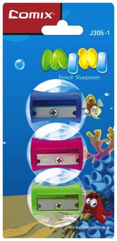 Ořezávátko 3ks Comix Mini J305-1. Pro ostré tužky a pastelky jako nikdy! Plastové ořezávátko s 1 otvorem bez odpadní nádobky v různých barvách.Vysoká pevnost ocele, trvanlivé ostří.