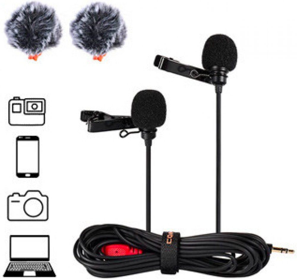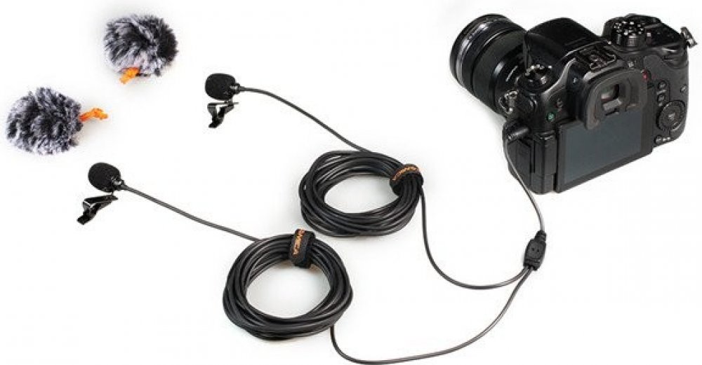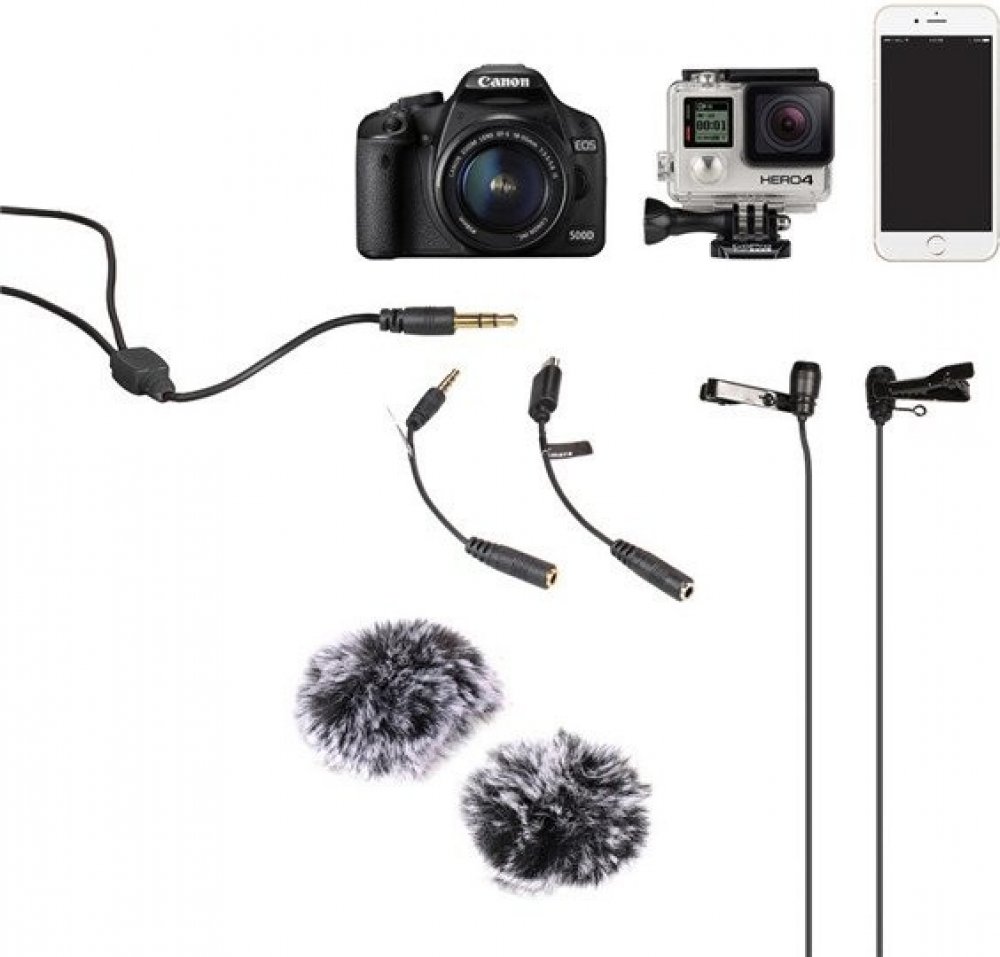 Duální všesměrový mikrofon CVM-D02 s délkou kabelu 2,5m umožňuje zaznamenávat zvuk ze dvou směru najednou. Kovový plášť chrání mikrofon a ochranný kryt "dead cat" zabraňuje rušení mikrofonu přímým větrem. Díky kravatové sponě jej lehce připevníte na různé částí oblečení.