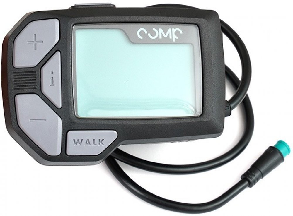 Displej S18 pro použití na elektrokolech se systémem Comp Drives C18 a je kompatibilní s aplikací COMP DRIVES pro chytré telefony. Konektor 9mm je určen pro připojení na EB-BUS kabel. Rozměry: 61mm x 85mm. Funkce: 5 stupňů podpory, asistent při chůzi, možnost vypnutí asistence motoru, aktuální rychlost, ujetá vzdálenost, celková ujetá vzdálenost, indikace právě zařazeného převodu, doporučení optimálního zařazeného stupně, microUSB, Bluetooth. Tento displej je možné použít místo displeje Comp...