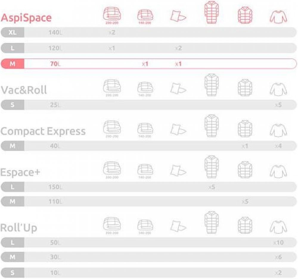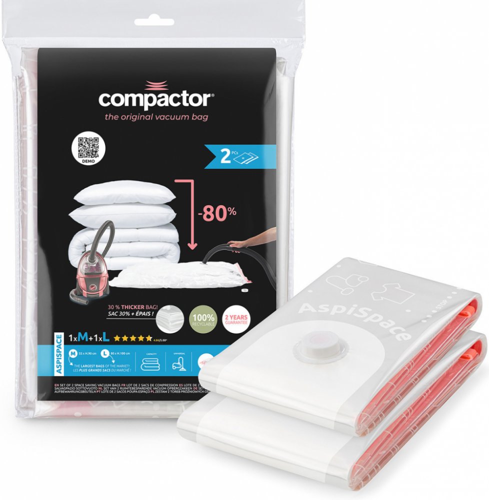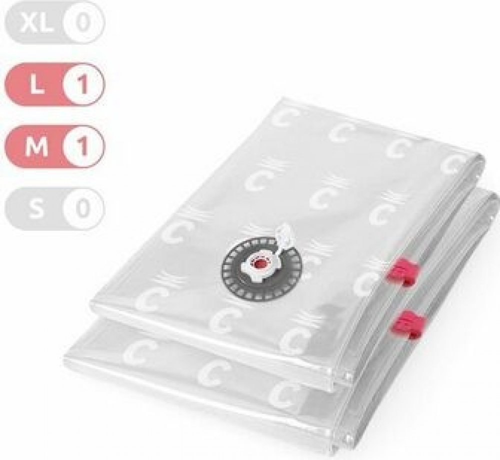Ušetřete až 80 % místa Pokud jsou vaše šuplíky nebo skříně plné k prasknutí a vy si lámete hlavu, kam se sezónními věcmi nebo lůžkovinami, řešení je jednoduché. Vakuové pytle vám pomohou uschovat vše potřebné jednoduchým způsobem, aniž byste museli kupovat nové skříně. Využijete je nejen v domácnosti nebo v hotelovém provozu, praktickým pomocníkem budou i při cestování. Práce s vakuovým pytlem je velmi snadná díky jednocestnému ventilu, který zabraňuje opětovnému nasání vzduchu, a plastovému zipu s jezdcem. Ten pytel spolehlivě uzavře. Ventil je kompatibilní se všemi typy vysavačů. Balení obsahuje celkem 2 pytle Vakuové pytle ušetří až 80 % prostoru Ochrana před vnějšími vlivy Důmyslný systém ušetří až 80 % vašeho prostoru, vaše textilie jsou navíc chráněné před poškozením, nečistotami, moly, vlhkostí a s ní spojenými plísněmi a roztoči. Vyžehlené prádlo po vyjmutí zůstává jako ze škatulky! Pytle jsou opakovaně použitelné (až 100×). Balení obsahuje 1 kus vakuových pytlů velikosti M(70 l) a 1 kus velikosti L (120 l). Pohodlně tak do vaků umístíte běžné přikrývky i polštáře.