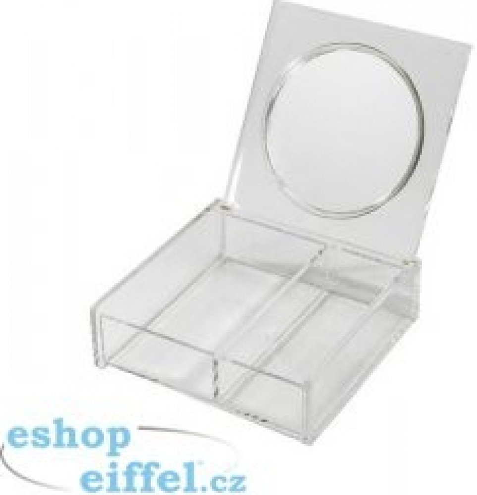 Do dvou oddělených přihrádek se vejde jen to základní kosmetické vybavení, které budete potřebovat, štěteček, rtěnka, oční stíny, vatové tampónky - pro mnohé situace dokonale dostatečné. Vše společně s kulatým zrcátkem (je umístěno ve víčku). Díky kompaktnímu balení může být tento malý organizér stále s vámi, nebo se stát součástí vašeho kosmetického stolku. Organizér je vyroben z lehkého, ale pevného čirého plastu. Svým vzhledem je tento výrobek společnosti Compactor naprosto nadčasový a bude se hodit do jakékoliv domácnosti. Je jednoduchý, střídmý a velice praktický a jeho výhody bezpochyby oceníte.