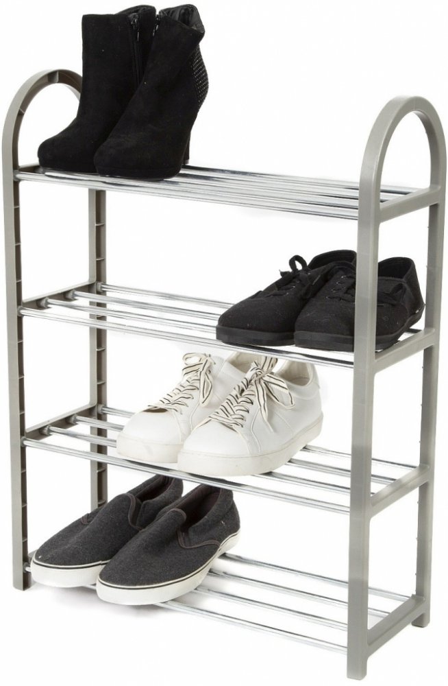 Už Vás nebaví mít boty poházené po celé předsíni? Tak si pořiďte tento praktický botník se čtyřmi poličkami, vejde se na něj 12 párů bot. Rám botníku je vyroben z lehkého, ale pevného materiálu - polypropylenu. Chromový vzhled poliček dává tomuto botníku nádech elegance. Dodává se rozebraný v krabici, ale složený je v okamžiku (návod je přiložen). Chromový vzhled botníku působí moderně, takže tento botník bude hezkým designovým doplňkem každé domácnosti, ale i třeba kanceláře. Umístit jej můžete do předsíně nebo pod schody, dle Vaší potřeby optimálního využití prostoru.Jestliže máte bot více a rádi byste je měli všechny stále po ruce, tento odolný botník je pro Vás to pravé. Na podlaze stojí pevně díky svému obdélníkovému rámu.Vlastnosti:- Šířka 46 cm- Hloubka 18 cm- Výška 65 cm