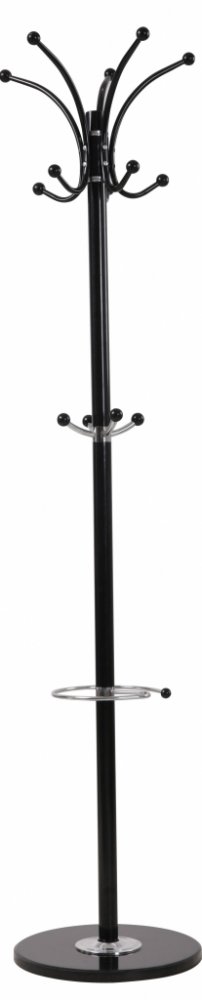 Věšák se stojanem na deštníky o velikosti 37 x 170 cm je skvělým pomocníkem do domácnosti, ale i do kanceláře nebo restaurace. Je ideální na saka, bundy, kabáty a drobné doplňky, jako jsou čepice, klobouky a šály. Věšák v barvě černé je z oceli a má pevný mramorový podstavec.