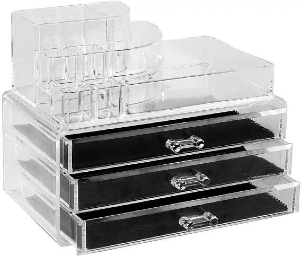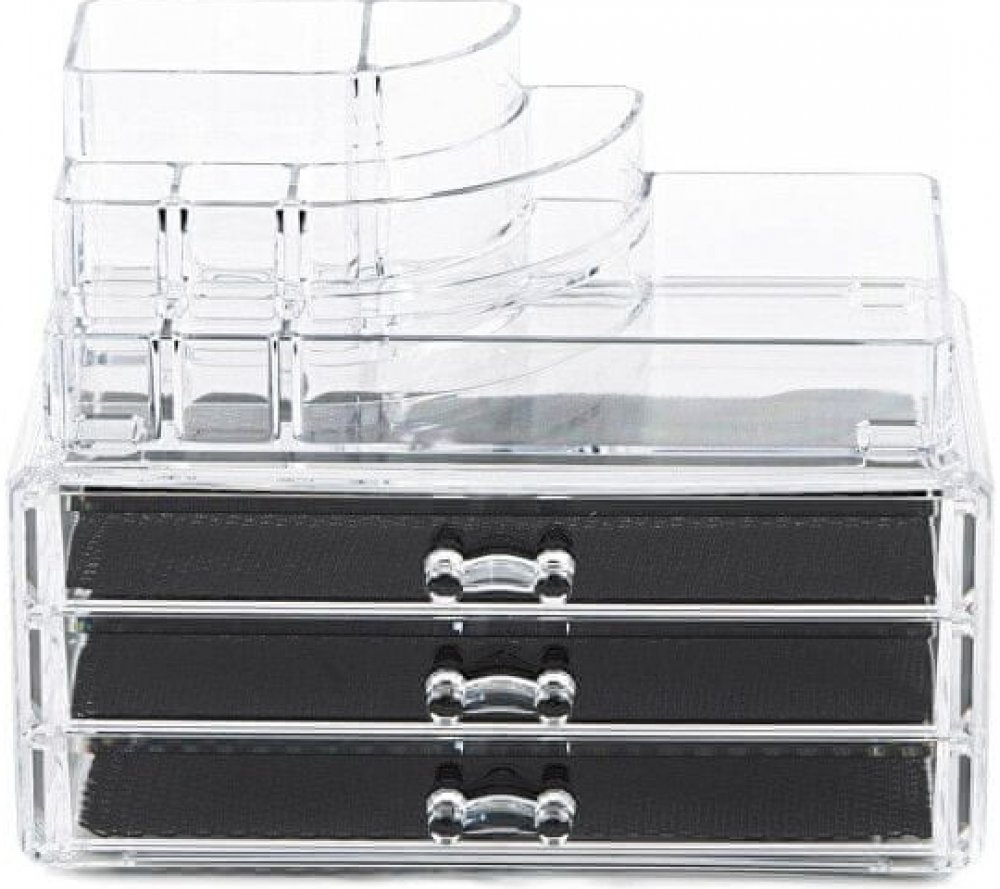 Velký organizér na kosmetiku Compactor je vyrobený z čirého pevného plastu. Skládá se ze 3 zásuvek a horního úložného dílu - ideální pro skladování veškeré kosmetiky. Rozměry 24 x 15 x 18,7 cm. S tímto velmi jednoduchým organizérem od společnosti Compactor budete mít vše potřebné přehledně na jednom místě. Mnoho oddělených přihrádek dobře poslouží nejen na rtěnky a řasenky ale i na kosmetické štět...