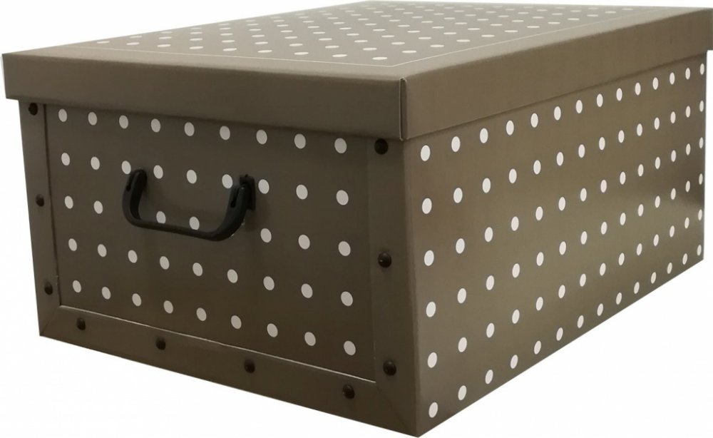 Skládací úložná krabice Compactor Rivoli Skládací úložný box je praktickým doplňkem do kanceláří i do domácností. Disponuje rozměry 50 × 40 × 25 cm a je vyroben ze silné lepenky. Můžete tak do něj uložit téměř cokoliv. Krabici dodáváme společně s víkem, které vložený obsah ochrání například před prachem nebo proti vlhkosti. Výhodou krabice je praktické madlo na přední straně, které skvěle poslouží...