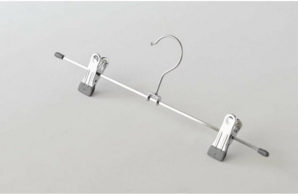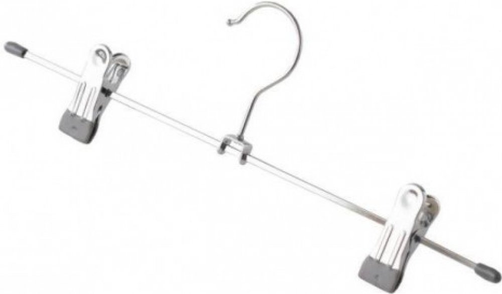 Praktické kovové ramínko pro sukně nebo kalhoty. Jednoduchá konstrukce, kdy na hlavním rameni jsou umístěny dva klipsy, které mají dostatečnou sílu udržet kalhoty či sukni. Ramínko je dostatečně pevné a zároveň lehké, bude velkým přínosem do vaší skříně.