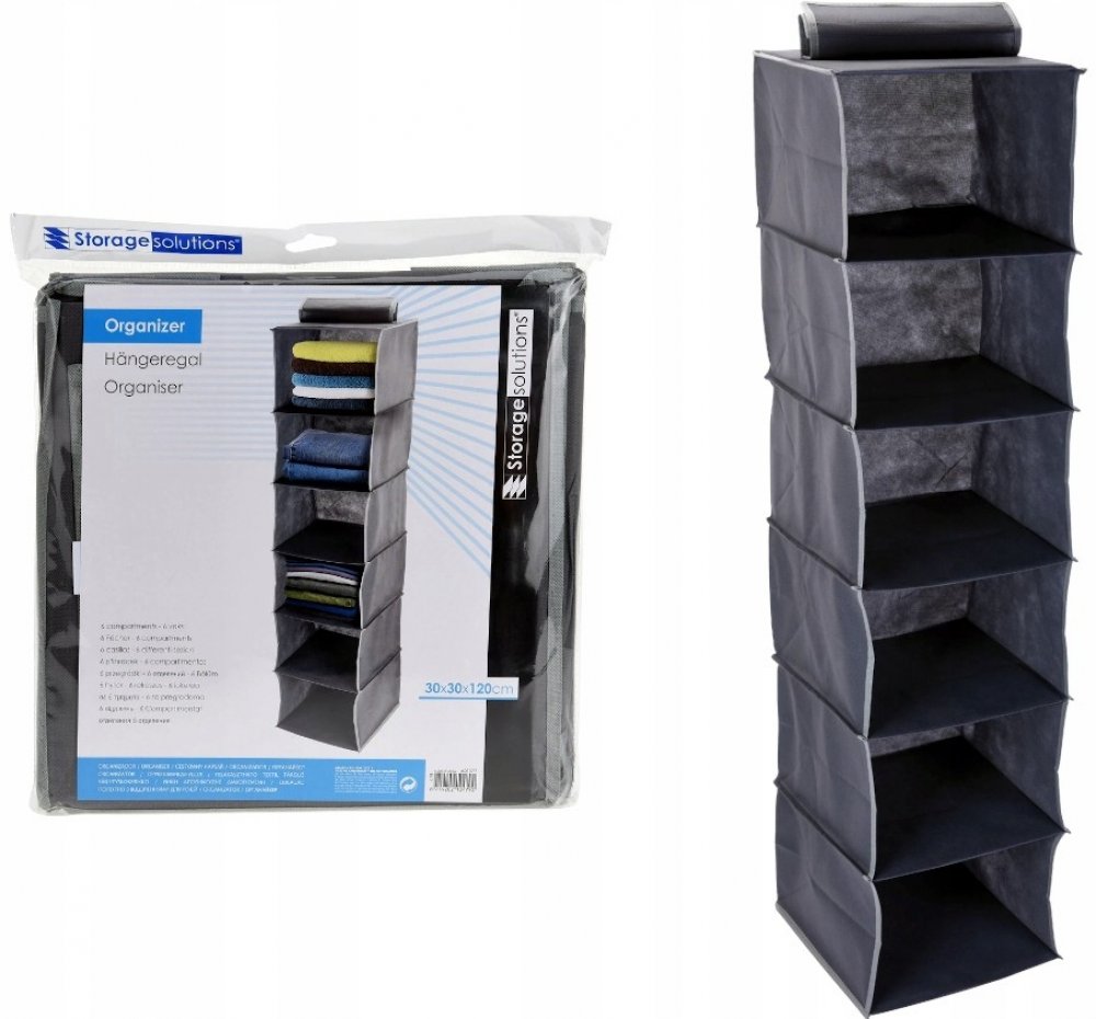 Skládací organizér na oblečení pro uskladnění lehkých věcí, například triček, svetrů, obuvi. Bude ideálním gadgetem pro majitele malých bytů. Skvěle vyřeší situaci s nedostatkem místa na uskladnění oblečení. Ideální na cesty, služební cesty nebo do studentského domu či podnájmu. Speciální, vysoce kvalitní materiál zajišťuje volný průtok vzduchu. Organizér byl vybaven prvkem umožňujícím zavěšení na...