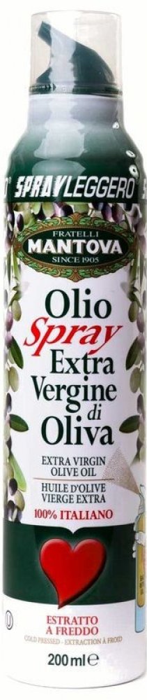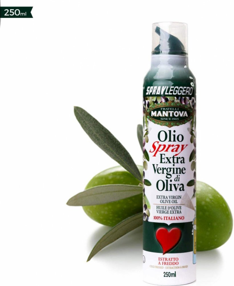Fratelli Mantova Extra Virgine Olio Spray - kvalitní olivový olej ve formě spreje Fratelli Mantova Extra Virgine Olio Spray je extra panenský olivový olej té nejvyšší kvality. Díky praktické formě spreje umožňuje rovnoměrné nanášení a tím také cílené dávkování celkového množství oleje. Díky tomu dochází ke snížení spotřeby oleje až o 90 %. I z tohoto důvodu je tento olej skvělým pomocníkem v kuchyni nejen v období diety. Jedno stisknutí spreje uvolní přibližně 1,8 ml oleje, což odpovídá asi 15 kaloriím. Sprej pracuje pouze se stlačeným vzduchem, neobsahuje tedy žádný přidaný hnací plyn a nepoškozuje ani ozonovou vrstvu. Fratelli Mantova Extra Virgine Olio Spray neobsahuje žádné konzervanty, ani přísady. Fratelli Mantova Extra Virgine Olio Spray v bodech: extra panenský olivový olej té nejvyšší kvality forma spreje umožňuje rovnoměrné nanášení a cílené dávkování celkového množství oleje snížuje spotřebu oleje až o 90 % skvělý pomocník v kuchyni nejen v období diety jedno stisknutí spreje uvolní přibližně 1,8 ml oleje, což odpovídá asi 15 kaloriím pracuje pouze se stlačeným vzduchem, neobsahuje žádný přidaný hnací plyn a nepoškozuje ozonovou vrstvu neobsahuje žádné konzervanty, ani přísady