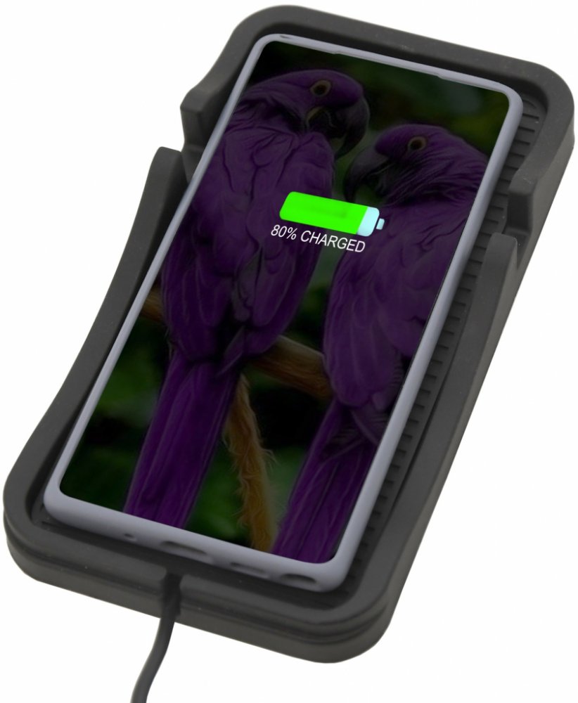 Podložka pro telefon s bezdrátovým Qi nabíjením.