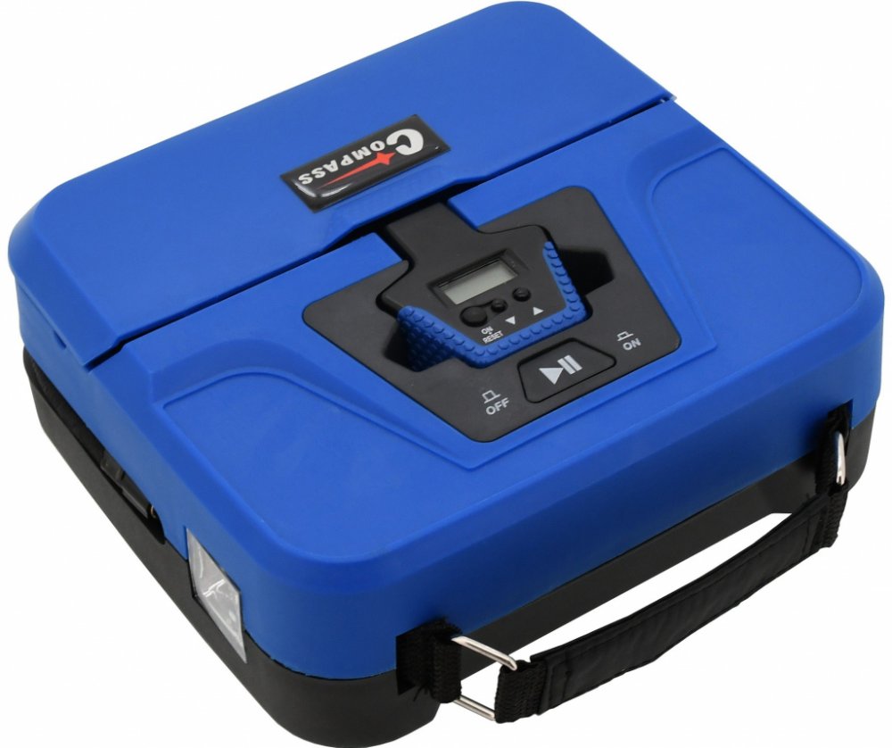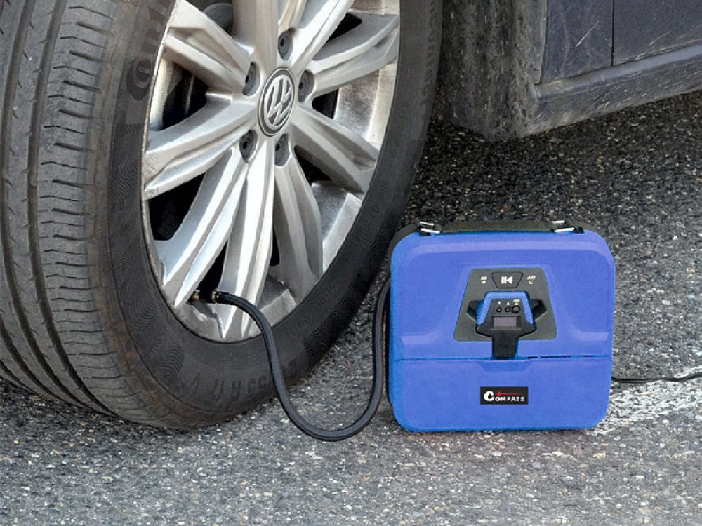 Kompaktní digitální vzduchový kompresor 12V je vybaven vestavěnou svítilnou, odnímatelným pneuměřičem a 3 adaptéry. Dlouhý kabel se zástrčkou do autozapalovače.
