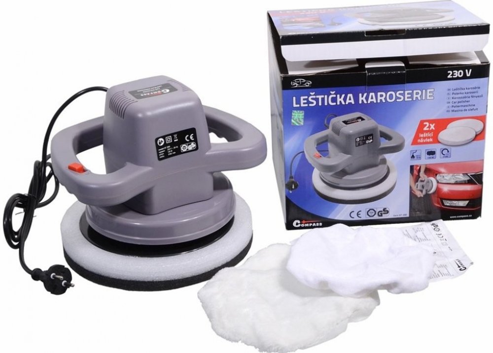 Leštička karosérií usnadňuje leštění a ošetřování karosérií automobilů i jiných ploch, u kterých se takové zákroky provádějí. Napájení 230 V, vyměnitelné leštící potahy kotouče pro nanášení i leštění. Součástí balení jsou i dva kryty (návleky) na leštičku.