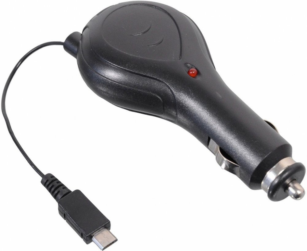 Nabíječka telefonu se samonavíjecím kabelem a zástrčkou do zásuvky automobilového zapalovače 12V nebo 24V.