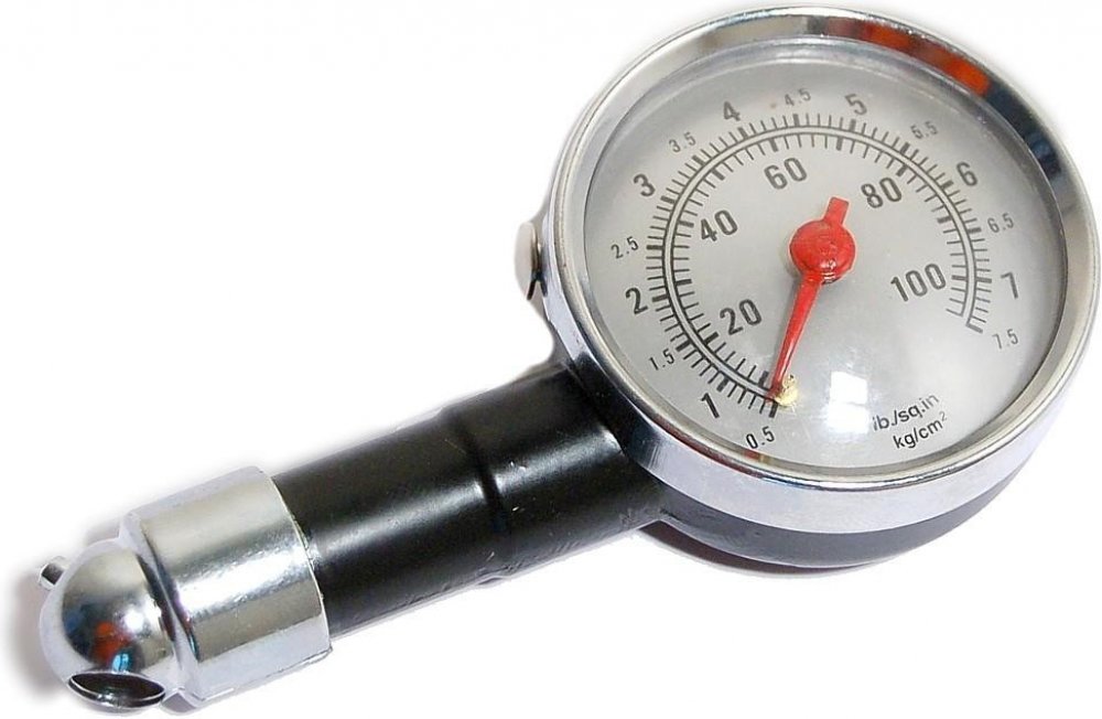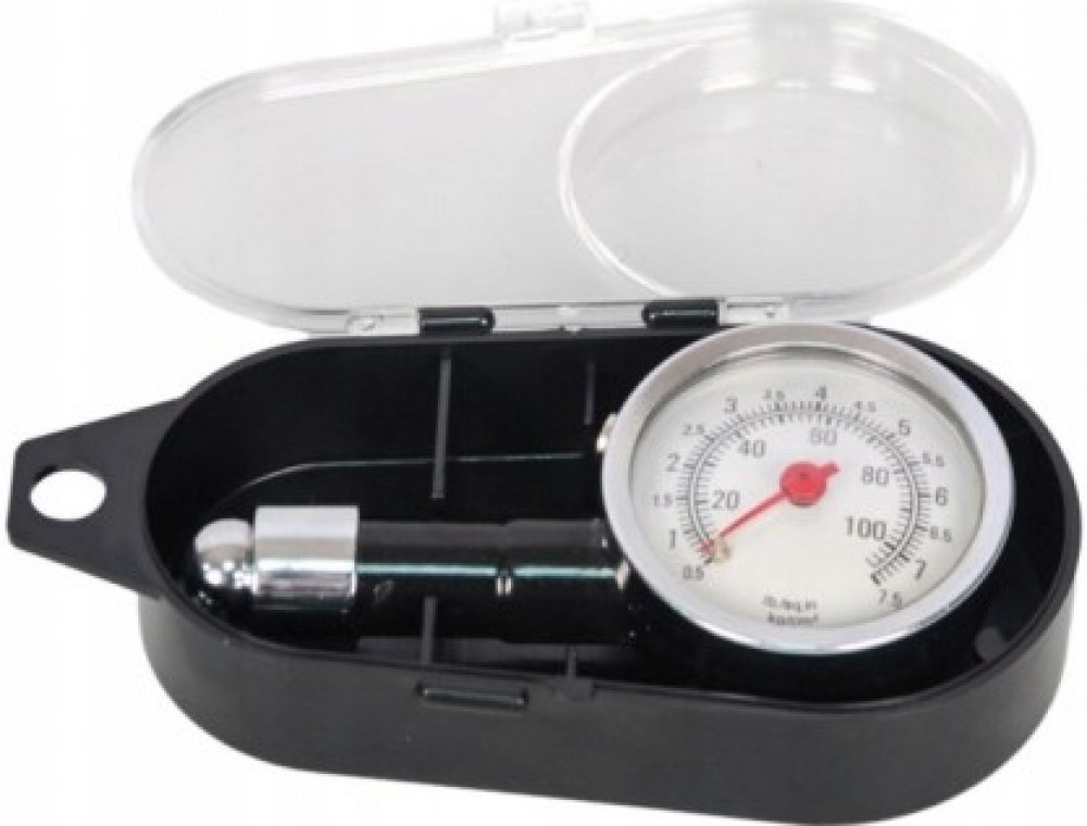 Compass pneuměřič metal 7 bar Compass pneuměřič metal 7 bar je profesionální měřič tlaku pneumatik značky Compass určený k přesnému a rychlému měření bez použití elektroniky. Popis produktu Jedná se o celokovový pneuměřič s robustní konstrukcí, která zajišťuje dlouhou životnost a odolnost vůči poškození. Měřicí rozsah se pohybuje od 0,5 do 7 Atm (atmosfér), což odpovídá tlaku běžných osobních i užitkových vozidel. Naměřené hodnoty jsou zobrazeny na klasickém budíku s čitelným ciferníkem a ručičkou, bez potřeby baterií. Pneuměřič umožňuje přesné a okamžité vyhodnocení tlaku vzduchu v pneumatikách. Použití Tento měřič je vhodný především pro řidiče osobních automobilů, menších užitkových vozidel a motocyklů, kteří chtějí kontrolovat tlak pneumatik pravidelně a s přesností. Hodí se do autoservisů i domácí garáže. Použití je omezeno na kontrolu tlaku vzduchu v pneumatikách v rozsahu do 7 bar. Výhody Odolná celokovová konstrukce pro dlouhou životnost Přesné zobrazení tlaku na klasickém budíku Měří tlak v rozsahu 0,5–7 Atm, vhodné pro široké spektrum vozidel Klíčové vlastnosti typ: pneuměřič tlaku pneumatik model: 09334 značka / výrobce: Compass materiál: celokovový klíčové provozní parametry: měřící rozsah 0,5–7 Atm (bar) rozměry a hmotnost: informace nejsou k dispozici povrch / úprava: kovový povrch obsah sady: pneuměřič další technické parametry: mechanické zobrazení na budíku FAQ Jaký je měřící rozsah pneuměřiče Compass 09334? Pneuměřič měří tlak v rozsahu od 0,5 do 7 Atm (bar). Je pro správnou funkci potřeba baterie? Ne, zařízení využívá mechanický budík, baterie nejsou potřeba. Pro jaká vozidla je pneuměřič vhodný? Je vhodný pro osobní auta, menší užitková vozidla a motorky s tlakem v pneumatikách do 7 bar.