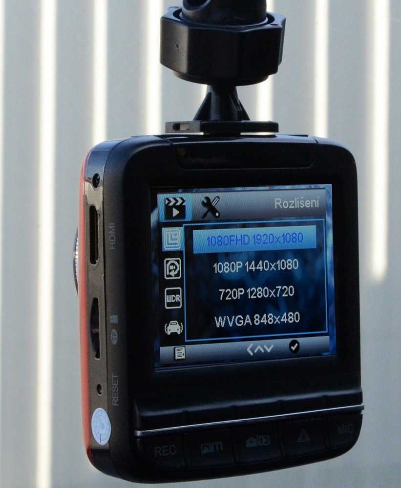 Napájení z 12V nebo 24V zásuvky autozapalovače, umožňuje jak snímání videa, tak pořizování fotografií, má 2,4" displej s vysokým rozlišením.
