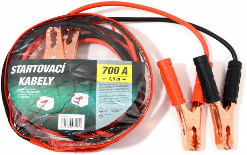 Startovací kabely výrobce Compass jsou klasické startovací kabely, barevně označené, se svorkami na akumulátor. Startovací kabely lze rychle a jednoduše vyjmout a zase uložit do na zip uzavíratelného obalu. Specifikace Materiál: CCA Max. proud: 700 A Délka: 2,5 m Návod Spojovány mohou být pouze akumulátory se stejným napětím (12V nebo 24V). Nejprve připojte červenou klipsu na kladný pól (+), potom černou klipsu na záporný pól (-). Nastartujte motor vozidla s dobitou baterií. Nastartujte motor připojeného vozidla. Odpojte nejprve černou klipsnu a až poté červenou.