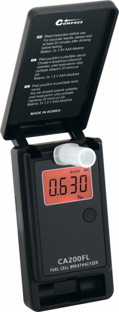 Je osazen přehledným displejem s podsvícením. Pracuje s rozsahem měření 0 - 4‰ alkoholu v krvi, s napájením 2x bat...
