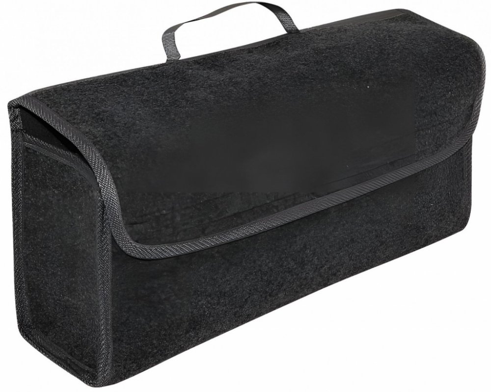 Brašna do zavazadlového prostoru osobních automobilů, vyrobená z odolné tkaniny, uzavírání na suchý zip, suché zipy pro fixaci k polstrování zavazadleového prostoru, ucho pro přenášení, rozměry 50x20x15 cm.