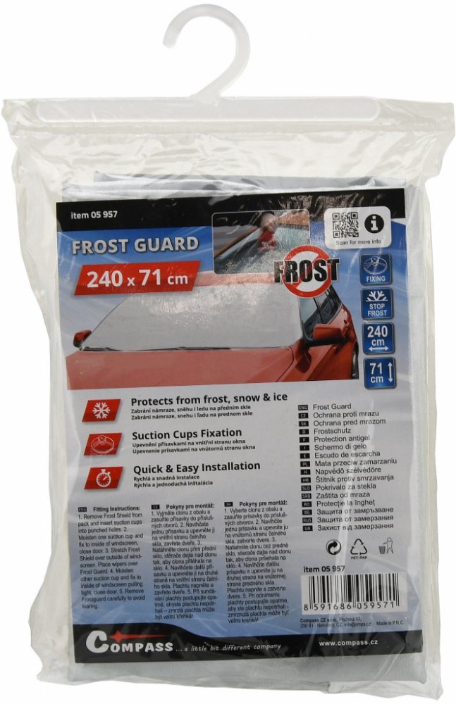 CO-05957 Dostupné: 8Ks Značka: COMPASS Váha: 0.1Kg Popis: Clona FROST na čelní sklo 240 x 71cm COMPASS