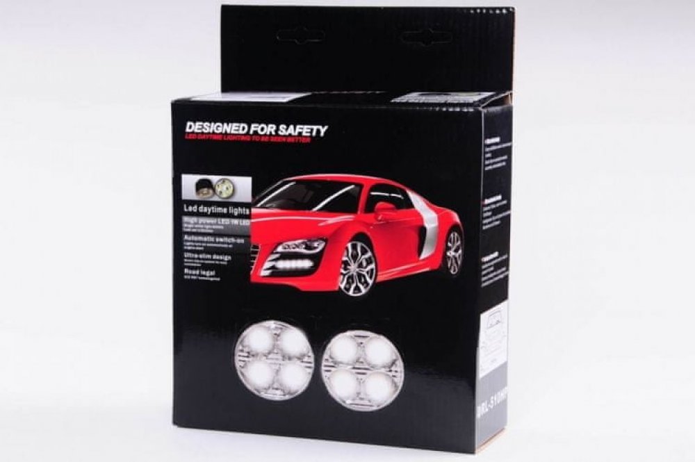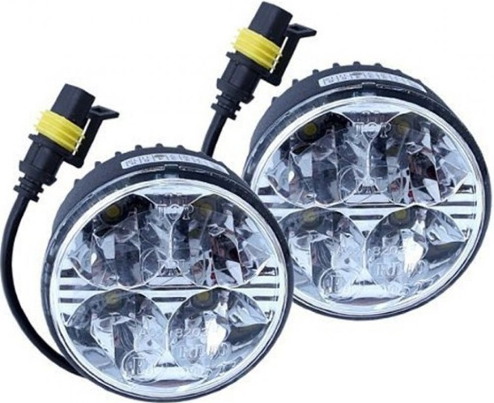 Homologovaná světla pro denní svícení, napájení 12/24 V. Každé světlo je osazeno 4x vysoce svítivou HI POWER LED diodou.