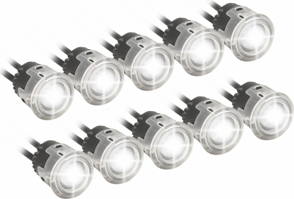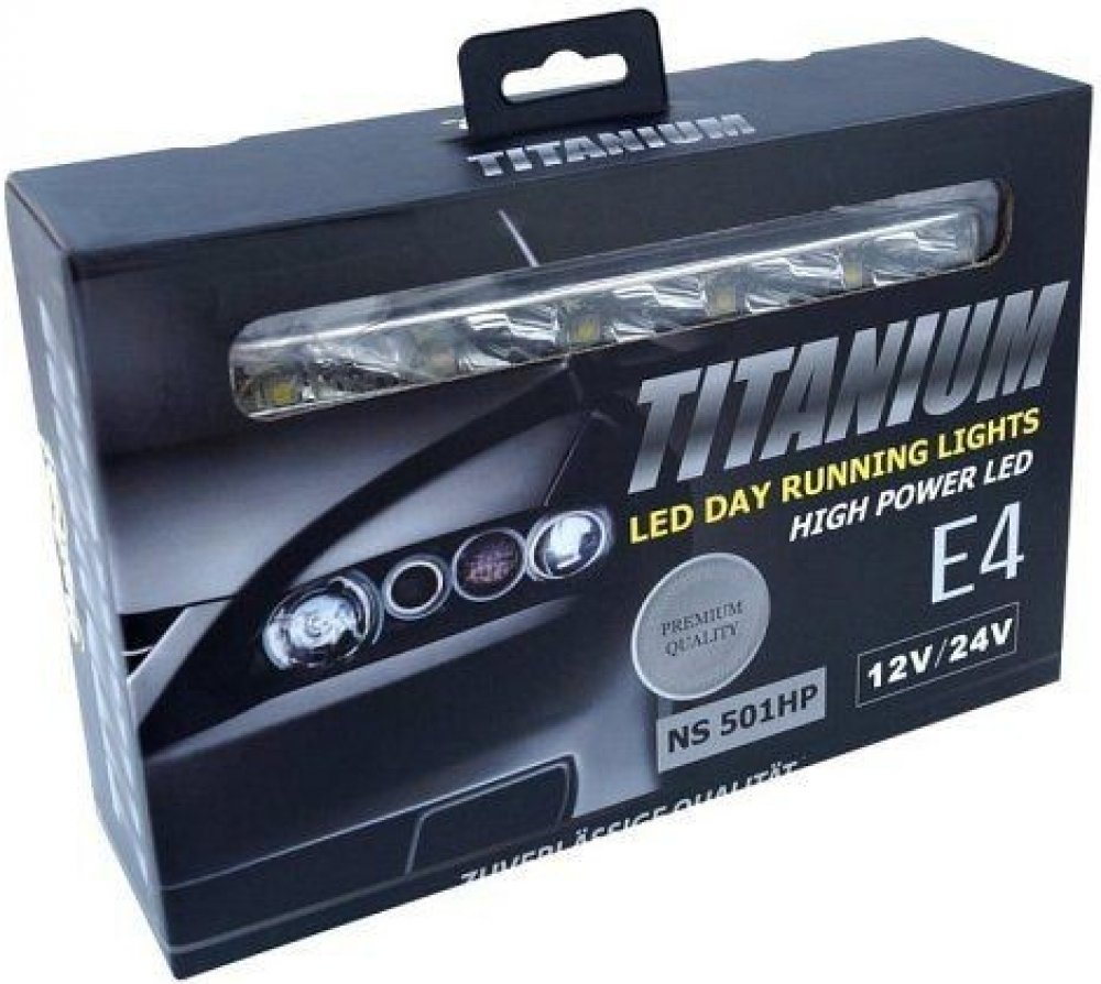 Homologovaná světla pro denní svícení, napájení 12/24 V. Každé světlo je osazeno 5x vysoce svítivou HI POWER LED diodou.