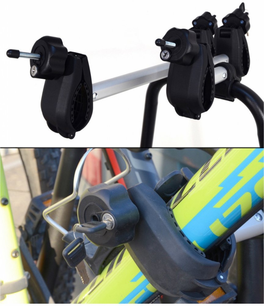 Upevnění kola do nosiče se obejde bez nářadí, provádí se uchycením držáku na rám a dotažením spon na kola, umístěných na základně. Mechanismus je uzamykací a nehrozí tak odcizení kola.