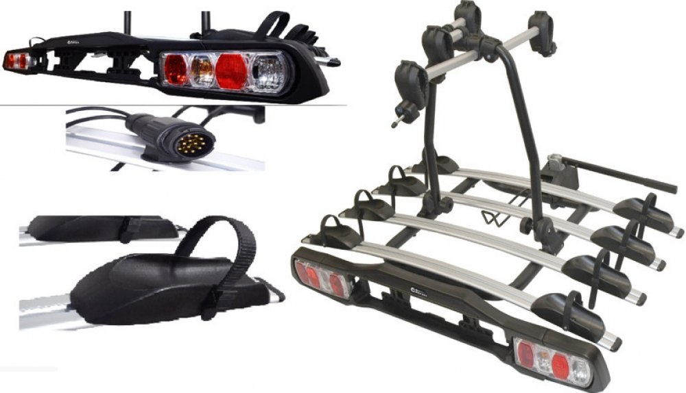 Nosič je precizně zhotoven z oceli a každá ze čtyř základen pro jízdní kola je z hliníku stříbrné barvy. Nosič je vhodný pro čtyři jízdní kola, nepřesahující dohromady hmotnost 60 kg.